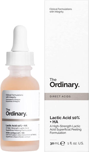 يُعد Lactic Acid 10% + HA من The Ordinary سيروم تقشير كيميائي يعتمد على حمض اللاكتيك (AHA) الذي يساعد على إزالة خلايا الجلد الميتة من سطح البشرة، مما يمنح البشرة مظهرًا أكثر نعومة وإشراقًا.