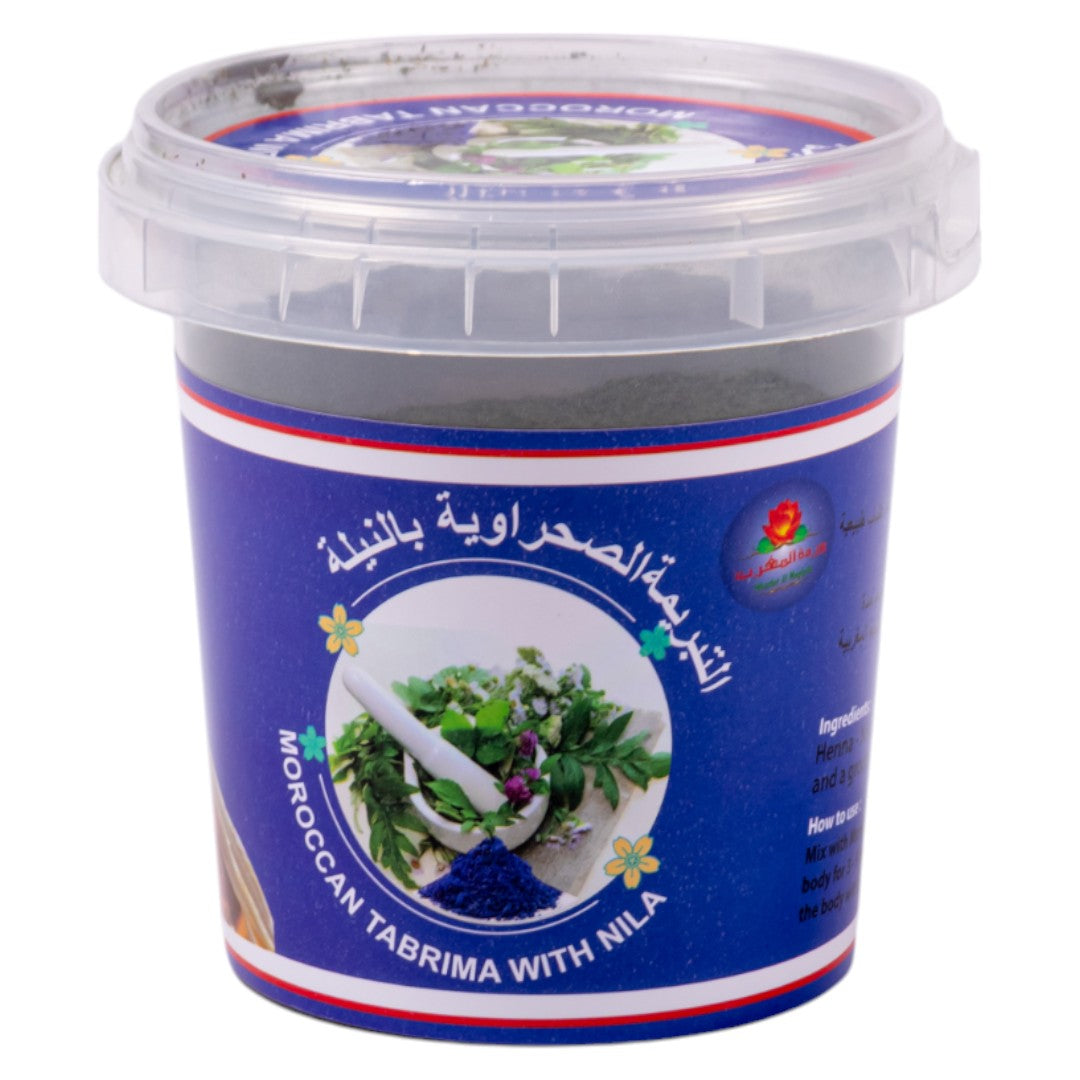 The Saharan scrub with indigo is a traditional Moroccan recipe used to lighten and purify the skin, especially dark areas. It combines natural ingredients that exfoliate the skin, even out its tone, and give it a smooth, radiant appearance.