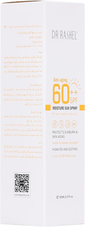 Get complete and effective sun protection with Dr. Rashel's Hydrating Sunscreen Spray SPF 60++ , which combines high UVA and UVB protection with deep hydration to keep your skin healthy and radiant. This spray helps prevent sunburn, combats signs of premature aging, and reduces the appearance of fine lines and wrinkles , while providing long-lasting protection suitable for various conditions. Thanks to its light, fast-absorbing formula, it leaves skin feeling refreshed and soft without any greasy or sticky feeling, making it ideal for everyday use and outdoor activities.