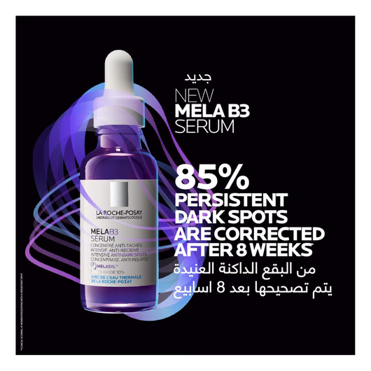 Restore your skin's radiance with La Roche-Posay Mela B3 Serum , an advanced solution specifically designed to treat all types of hyperpigmentation. This serum combines cutting-edge Melasyl™ technology with a potent concentration of niacinamide to target dark spots , reduce their intensity, and prevent their reappearance. With regular daily use, it gives the skin a more radiant and even complexion, and is suitable even for the most sensitive skin types.