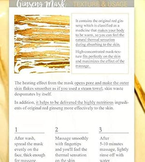 A mask enriched with high-quality Korean ginseng extract, it deeply nourishes the skin and stimulates blood circulation, giving the skin a bright and firm appearance. It helps improve skin elasticity, reduce fine lines, and cleanse pores of impurities, leaving the skin smooth and radiant.