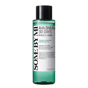 Quickly soothes problem skin with just a wipe. Miracle toner contains AHA, BHA, PHA that removes dead skin cells and impurities, a good skin soothing agent, 10,000ppm Tea Tree Water