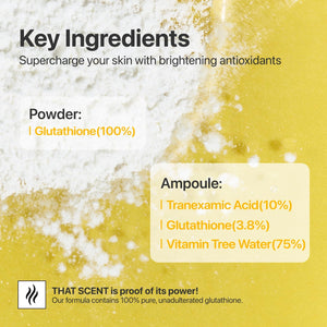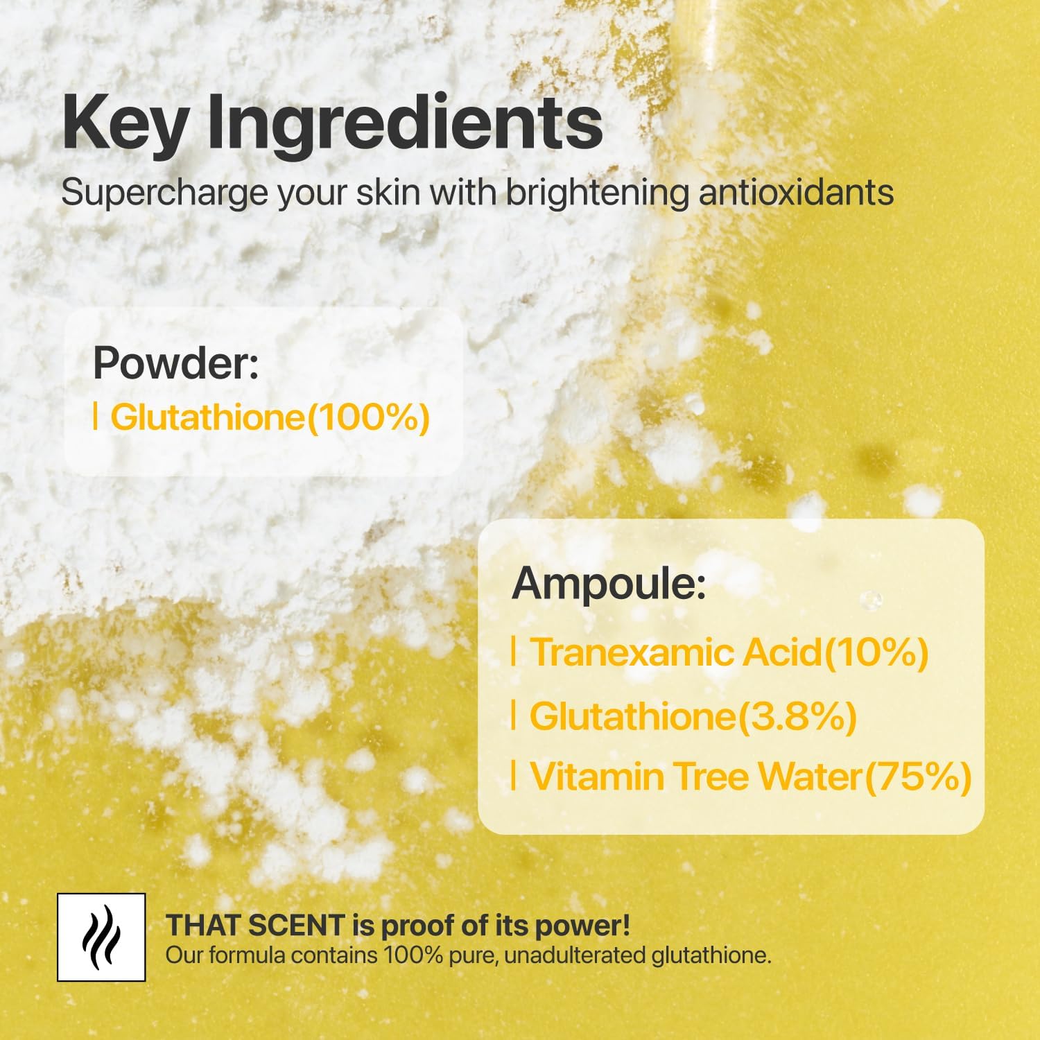 تتميّز بتصميم مبتكر يسمح بمزج مسحوق الجلوتاثيون الطازج عند أول استخدام لضمان أعلى فعالية ونضارة مع كل تطبيق.
