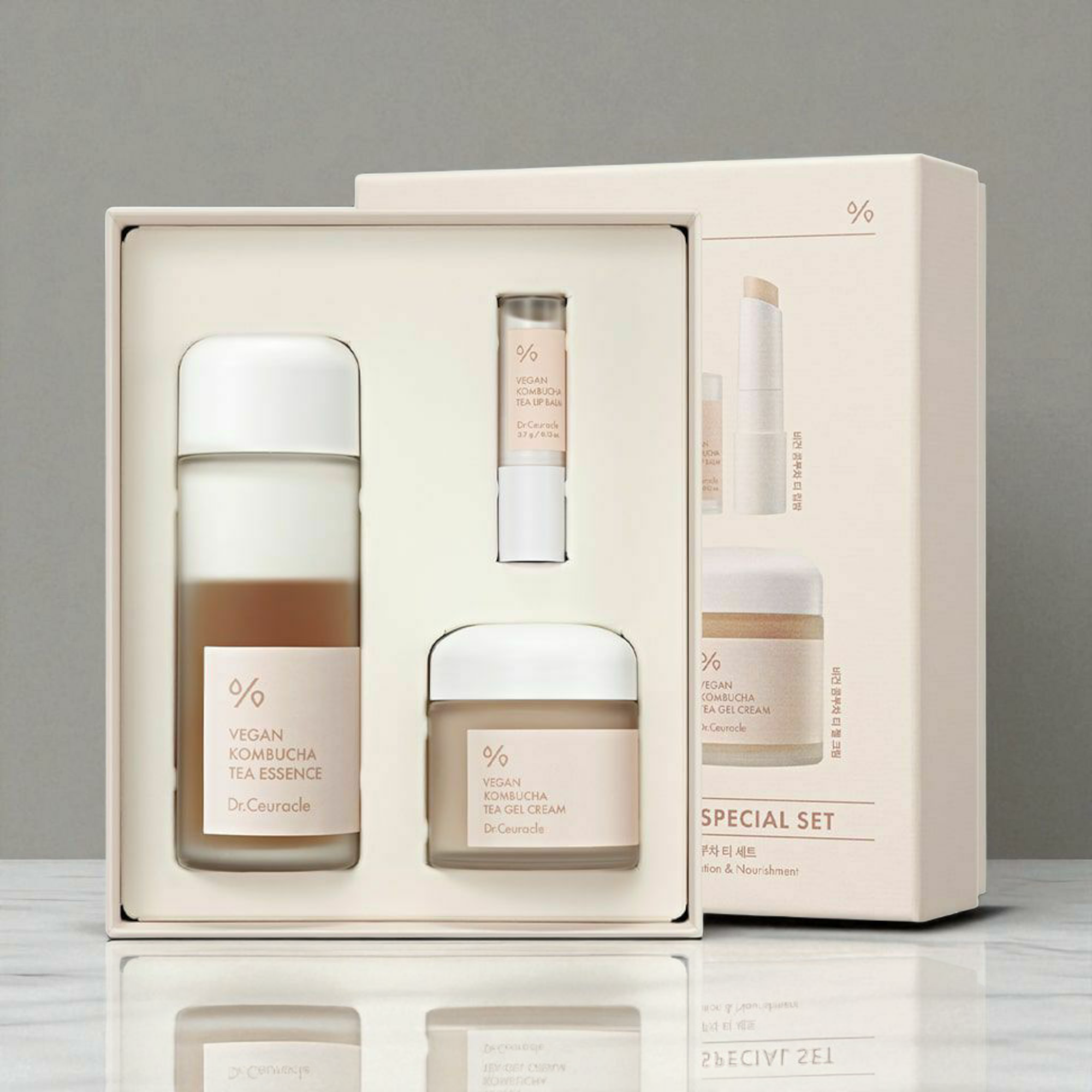 مجموعة العناية بالبشرة من شاي الكومبوتشا النباتي من دكتور سيوراكل هي الخيار المثالي لمن يسعى إلى الحصول على بشرة مترطبة، مشدودة ومشرقة. بفضل المكونات الطبيعية و التركيبة الفعالة، تمنحك هذه المجموعة الترطيب المتواصل وتجعل بشرتك أكثر شبابًا وحيوية. جربها الآن وتمتع ببشرة مشرقة وصحية!