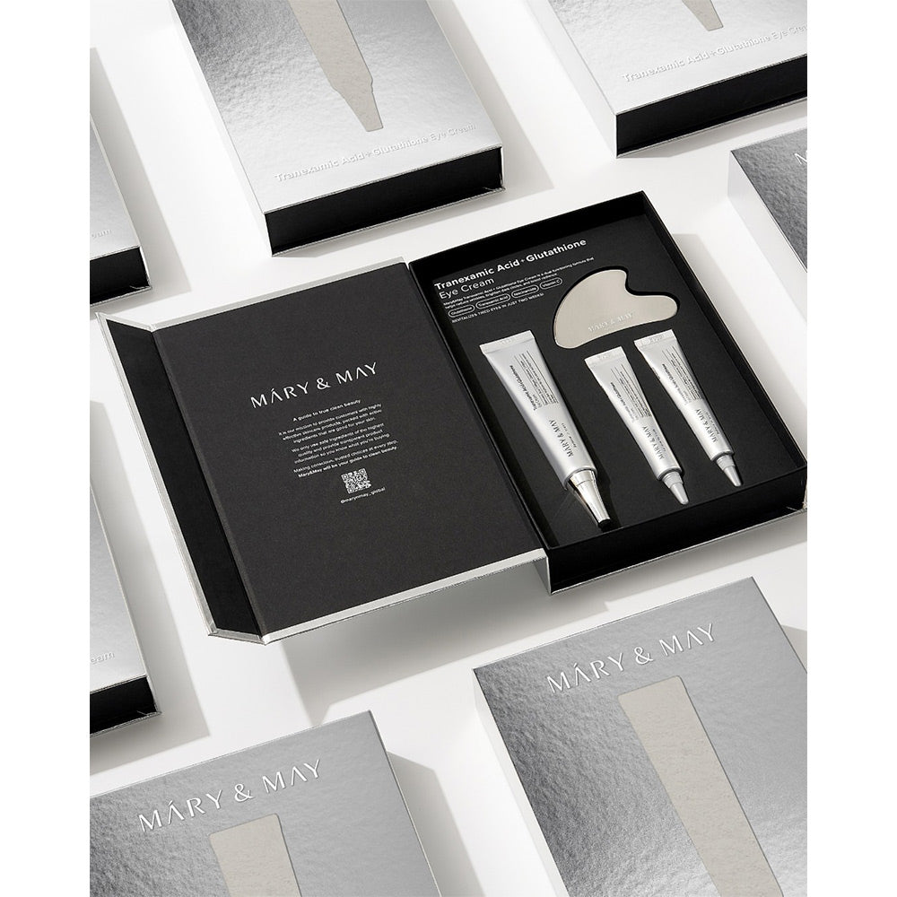 اختبري روتيناً متكاملاً وفاخراً مع مجموعة كريم العين بحمض الترانيكساميك والجلوتاثيون من ماري آند ماي التي توفر تفتيحاً للهالات السوداء، ترطيباً مكثفاً، تهدئة للانتفاخ، وتحسين مرونة وإشراقة البشرة الحساسة حول العينين. مع الاستمرار في الاستخدام، ستنعمين بمنطقة عين أكثر انتعاشاً، إشراقاً، وشباباً تمنحكِ مظهراً واثقاً ومفعماً بالحيوية.
