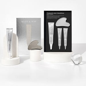 أعيدي إشراقة عينيكِ مع مجموعة كريم العين من ماري آند ماي، المصممة لتمنح البشرة الرقيقة حول العينين عناية شاملة ومكثفة. تجمع المجموعة بين حمض الترانيكساميك القوي في تقليل التصبغات والهالات السوداء والجلوتاثيون الذي يساعد على تحسين إشراقة البشرة وتوحيد لونها، إضافة إلى النياسيناميد وفيتامين C اللذين يدعمان مرونة البشرة ونضارتها الطبيعية. تتميز المجموعة بتركيبة لطيفة وخفيفة الوزن تناسب البشرة الحساسة وتوفر ترطيباً عميقاً وراحة فورية، مع دعم أداة Gua Sha المعدنية التي تعزز امتصاص المكونات الفعالة وتحفّز الدورة الدموية لتمنحكِ نظرة مشرقة وأكثر شباباً.