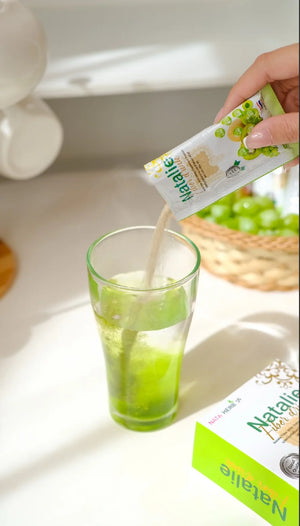 - عصير العنب الأخضر المركز: يُعزز طرد السموم ويحسّن الامتصاص المعوي.